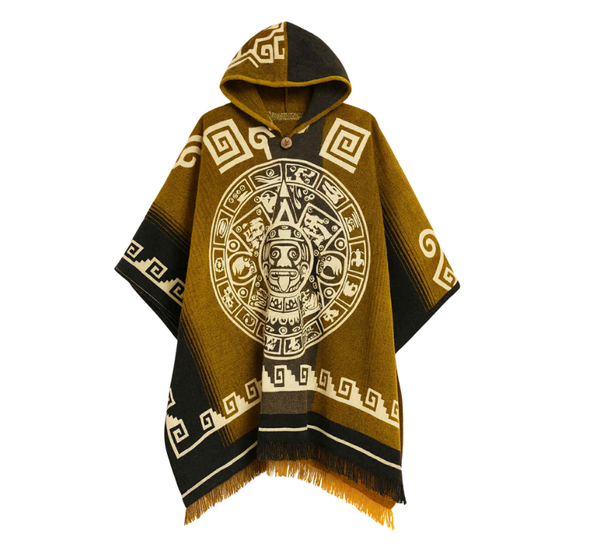 Aztec Calendar Handcrafted Mexican Poncho – Traditional Pattern Collection